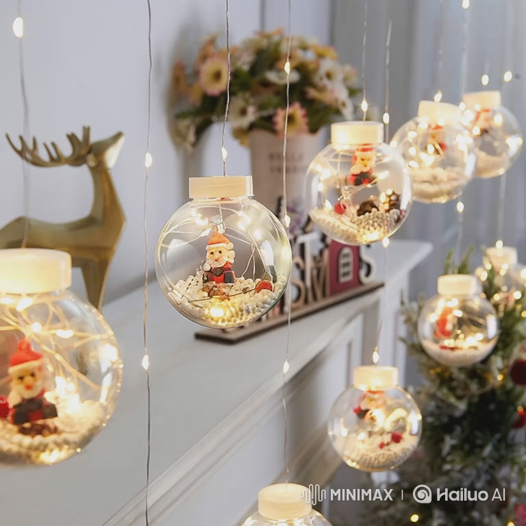 Adauga un strop de magie sarbatorilor cu aceasta instalatie de Craciun tip perdea, formata din globuri luminoase cu decor tematic si lumini calde. Creeaza o atmosfera festiva, eleganta si plina de farmec, perfecta pentru ferestre, pereti sau decorul bradului.